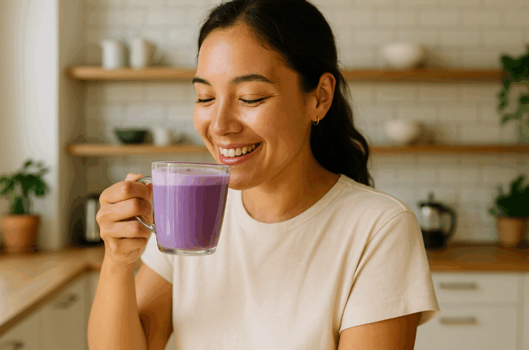 Boire un latte peut être un simple geste du quotidien. Mais quand la tasse se pare d’un violet profond, presque hypnotisant, c’est tout un univers …